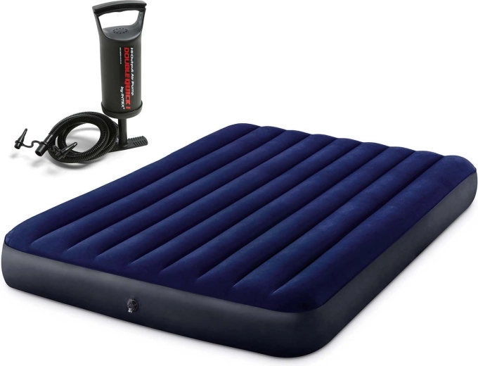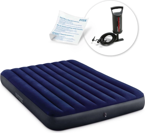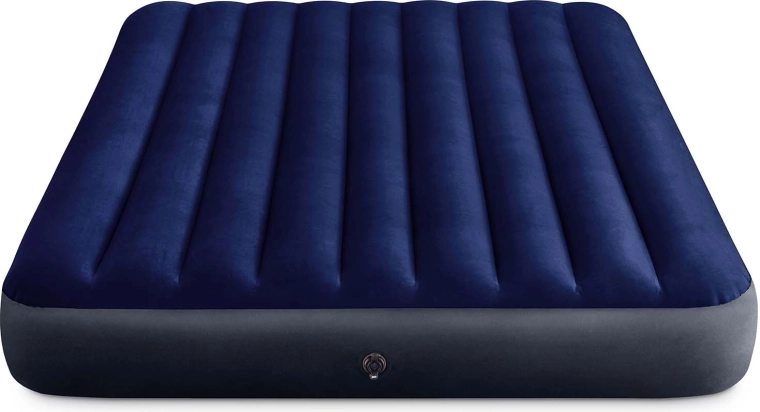 Le lit gonflable INTEX de 203 × 152 × 25 cm offre un couchage confortable pour deux adultes. La surface en velours (flockée) est douce et antidérapante, tandis que la structure interne à chambres assure un soutien uniforme du corps sans affaissement désagréable.
