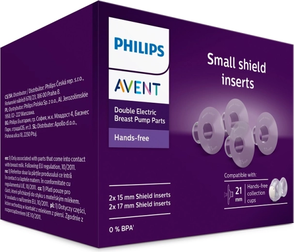 Des inserts pratiques pour PHILIPS AVENT en tailles 15 mm et 17 mm assurent un ajustement confortable et sûr lors du tirage de lait en mode mains libres. Conçus pour être utilisés avec le tire-lait mains libres et les protecteurs de sein 21 mm Philips Avent. Ils offrent un nettoyage facile, un assemblage rapide et un port naturel pour un tirage efficace et doux.