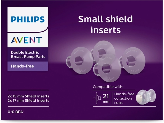 Les inserts pour protecteurs de sein Philips Avent aident à adapter précisément la taille de l’embout aux mamelons plus petits pour un tirage confortable, efficace et sans points de pression. En tailles 15 mm et 17 mm, ils complètent parfaitement les protecteurs de sein 21 mm et permettent une mise en place naturelle ainsi qu’une fixation stable lors du tirage mains libres.