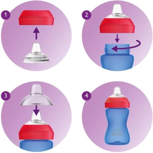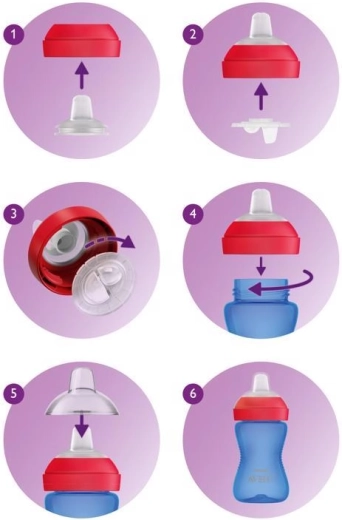 Le couvercle hygiénique pratique garde le bec propre à la maison comme en déplacement. Toutes les pièces se démontent facilement et sont lavables au lave-vaisselle. Le gobelet est fabriqué en matériau sûr sans BPA (0 % BPA) et est compatible avec les biberons Philips Avent Classic et Natural (sauf en verre).