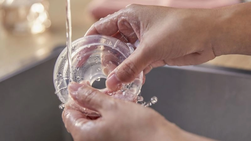 Le tire-lait se démonte rapidement en plusieurs pièces et ses surfaces lisses permettent un rinçage minutieux et une hygiène parfaite après chaque utilisation.