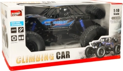 Grande voiture tout-terrain radiocommandée à l’échelle 1:10 avec transmission 4×4, suspension à ressorts et énormes roues en caoutchouc pour une adhérence sûre sur terrain difficile. Commande fiable en 2,4 GHz, portée jusqu’à 60 m et autonomie d’environ 20 minutes par charge.