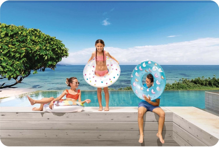 Avec son diamètre de 81 cm et une charge maximale de 40 kg, elle offre une flottabilité stable pour les enfants et les jeunes ados – parfaite pour se détendre et jouer dans l’eau.