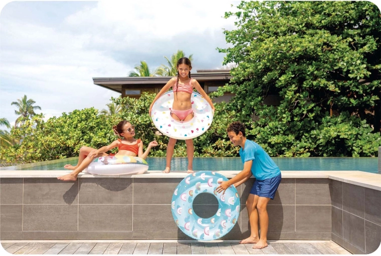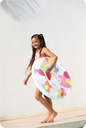 La bouée de natation INTEX au style fleuri et coloré offre beaucoup d’amusement et une détente agréable sur l’eau. La finition transparente et blanche, aux couleurs vives, est très visible et sublime chaque photo d’été. Grâce au PVC de qualité d’une épaisseur de 0,2 mm, la bouée est légère tout en restant résistante aux petites éraflures.