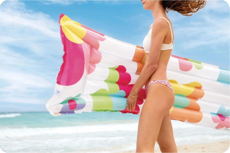 Profitez de l’été sur l’eau avec le matelas gonflable INTEX de 183 × 69 cm. Il offre un oreiller ergonomique, une structure stable à longerons I-beam et un matériau PVC résistant pour une longue durée de vie. Sa conception légère se gonfle et se dégonfle rapidement et, une fois pliée, prend un minimum de place – idéale pour la mer, le lac ou la piscine.