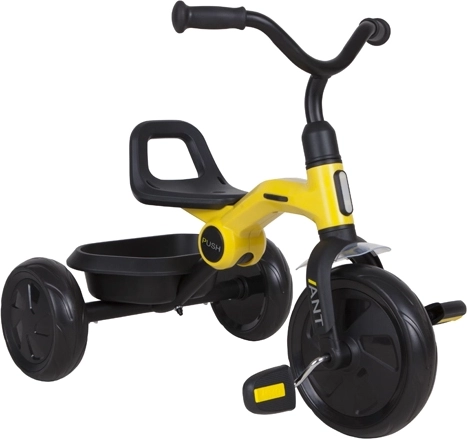 Le tricycle Qplay Ant, léger et résistant, dans une élégante couleur jaune, est idéal pour les enfants de 2 à 6 ans. Il offre une construction métallique solide, une sellette réglable qui accompagne la croissance de l’enfant, des roues EVA sans entretien résistantes aux crevaisons et un design pliable compact avec poignée pour un transport facile. La ceinture de sécurité assure la protection, tandis que le panier arrière accueille les jouets pour les sorties.