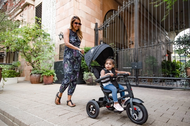 Capote UPF 50+, harnais 5 points, repose-pieds et frein arrière couplé maintiennent le petit passager à l’aise et en sécurité à chaque sortie.