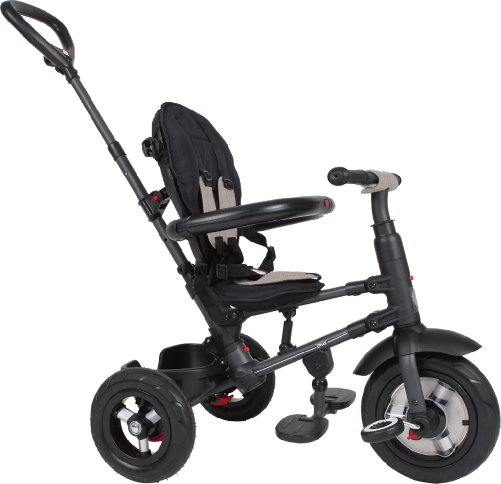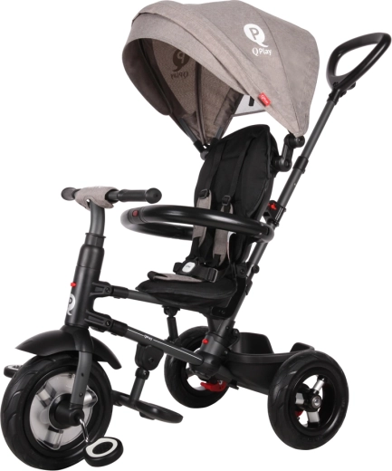 Offrez à votre enfant une promenade confortable et sûre avec le tricycle QPlay Rito Air Gel Grey. Il propose un cadre pliable, une capote amovible avec UPF 50+, des roues en caoutchouc à air (gel) pour une conduite fluide et des ceintures de sécurité à 5 points. Grâce au dossier réglable, à la roue avant à roue libre et au contrôle parental, il est idéal pour les balades quotidiennes de 10 à 72 mois.