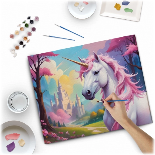 Créez votre propre tableau éclatant à motif licorne et profitez d’une expérience créative relaxante. Grâce aux zones préimprimées et numérotées, il suffit d’associer la couleur au numéro et de remplir progressivement les cases – le résultat se transformera sous vos yeux en une œuvre d’art achevée.