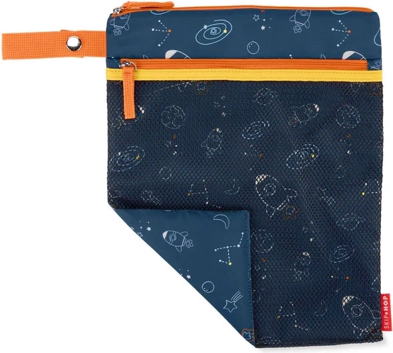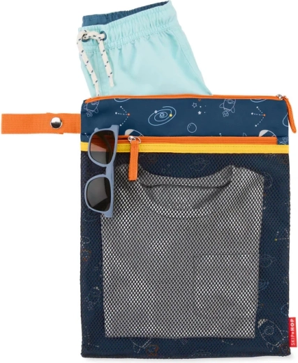 Gardez l’ordre et l’hygiène même en déplacement. Le sac imperméable Skip Hop Spark Style au motif Rocket dispose d’une solution à deux compartiments qui sépare les affaires mouillées et sales des affaires propres. Grâce à la poche spacieuse zippée, vous rangez aisément maillots, serviettes et vêtements d’enfant.