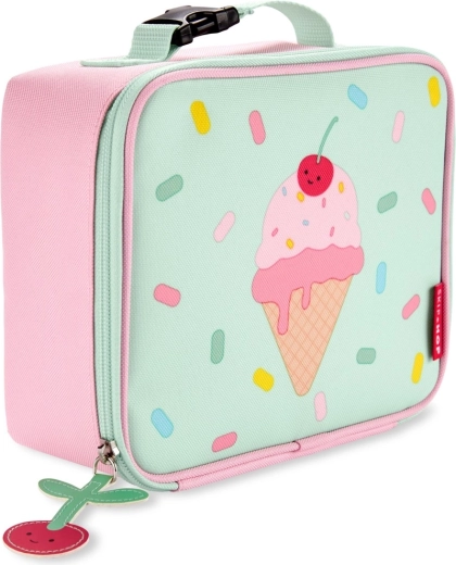 Un sac déjeuner pour enfants stylé à motif de glace de SKIP HOP garde le goûter frais plus longtemps grâce à son intérieur isolé. Il possède une fermeture zippée pratique avec un joli tire-zip, une poignée à attacher pour le fixer au sac à dos et une poche intérieure en mesh pour les couverts ou un pain de glace. Idéal pour l’école, les camps et les pique-niques.