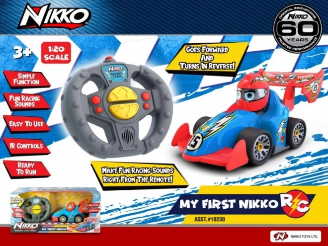 Première voiture RC pour enfants My First Nikko : commande facile, bords souples sécurisés, sons amusants et piles incluses. Idéale pour les enfants à partir de 2 ans.