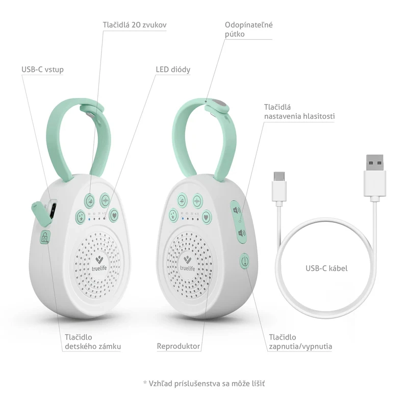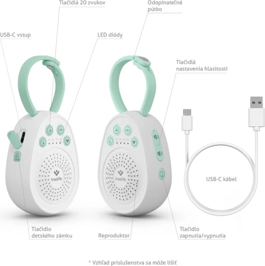 - Berceur TrueLife BabyTone S3, câble USB‑C, manuel