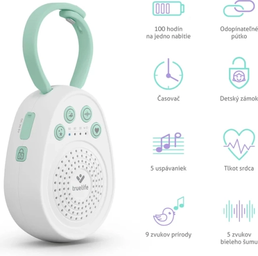 Apaisez votre bébé pour un sommeil paisible avec le berceur portable TrueLife BabyTone S3. Il propose jusqu’à 20 sons apaisants dont des mélodies, des sons de la nature, du bruit blanc et un battement de cœur. Grâce à une autonomie allant jusqu’à 100 heures, un minuteur 30/60/90 min, la mémoire du dernier son et une dragonne amovible pratique, il est idéal pour le lit bébé, la poussette et les voyages. Sa conception sans BPA et le verrouillage enfant assurent une utilisation sereine et sûre.