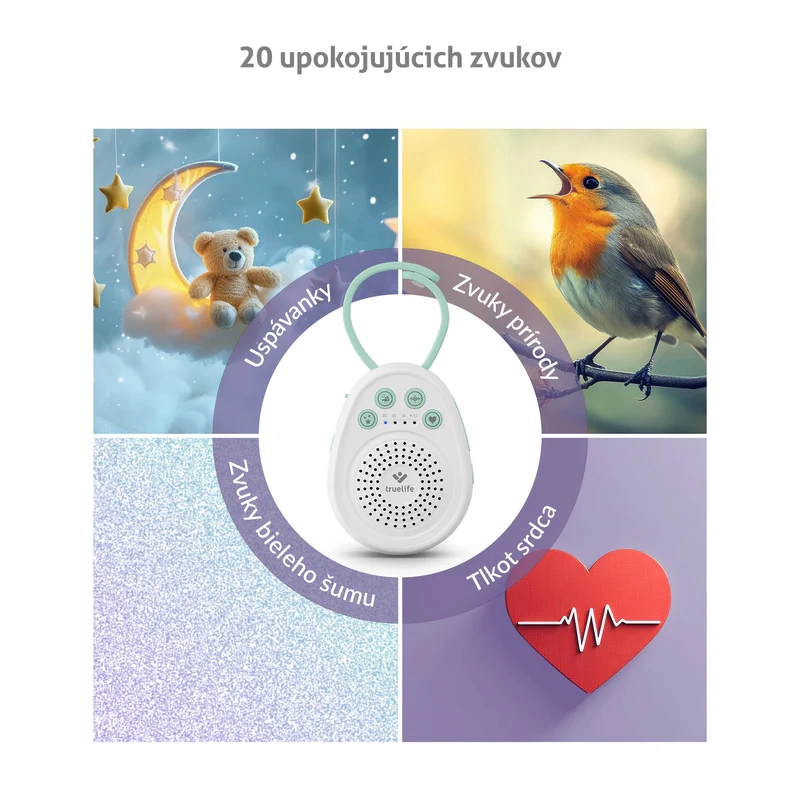 TrueLife BabyTone S3 est un module d’endormissement portable et compact qui aide les enfants à s’endormir plus vite et à dormir plus longtemps. Son haut‑parleur de qualité diffuse en boucle jusqu’à 20 sons – des mélodies douces aux bruits de la nature, en passant par le populaire bruit blanc et un battement de cœur authentique, qui recrée la sensation de sécurité connue de la période prénatale. Grâce à la mémoire du dernier son, à l’allumage, l’appareil relance automatiquement ce qui fonctionne le mieux.