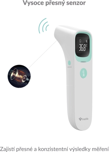 TRUELIFE Care Q9 est un thermomètre infrarouge sans contact moderne qui mesure la température en 1 seconde avec une grande précision. Grâce à ses trois modes, il mesure la température corporelle au front et à l’oreille, ainsi que la température des objets et liquides – idéal pour le lait infantile, le bain ou les boissons. L’indicateur coloré sur l’écran signale immédiatement une température élevée, même dans l’obscurité.