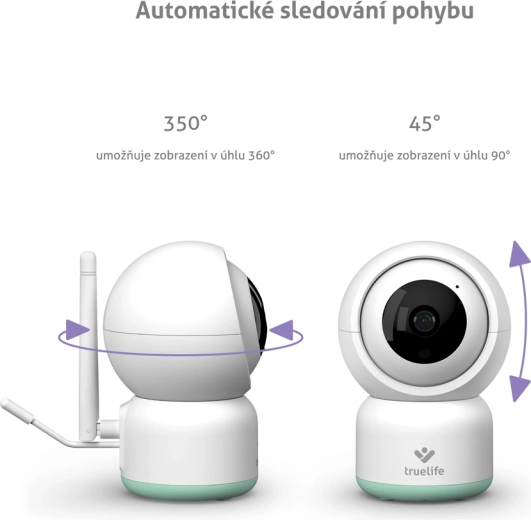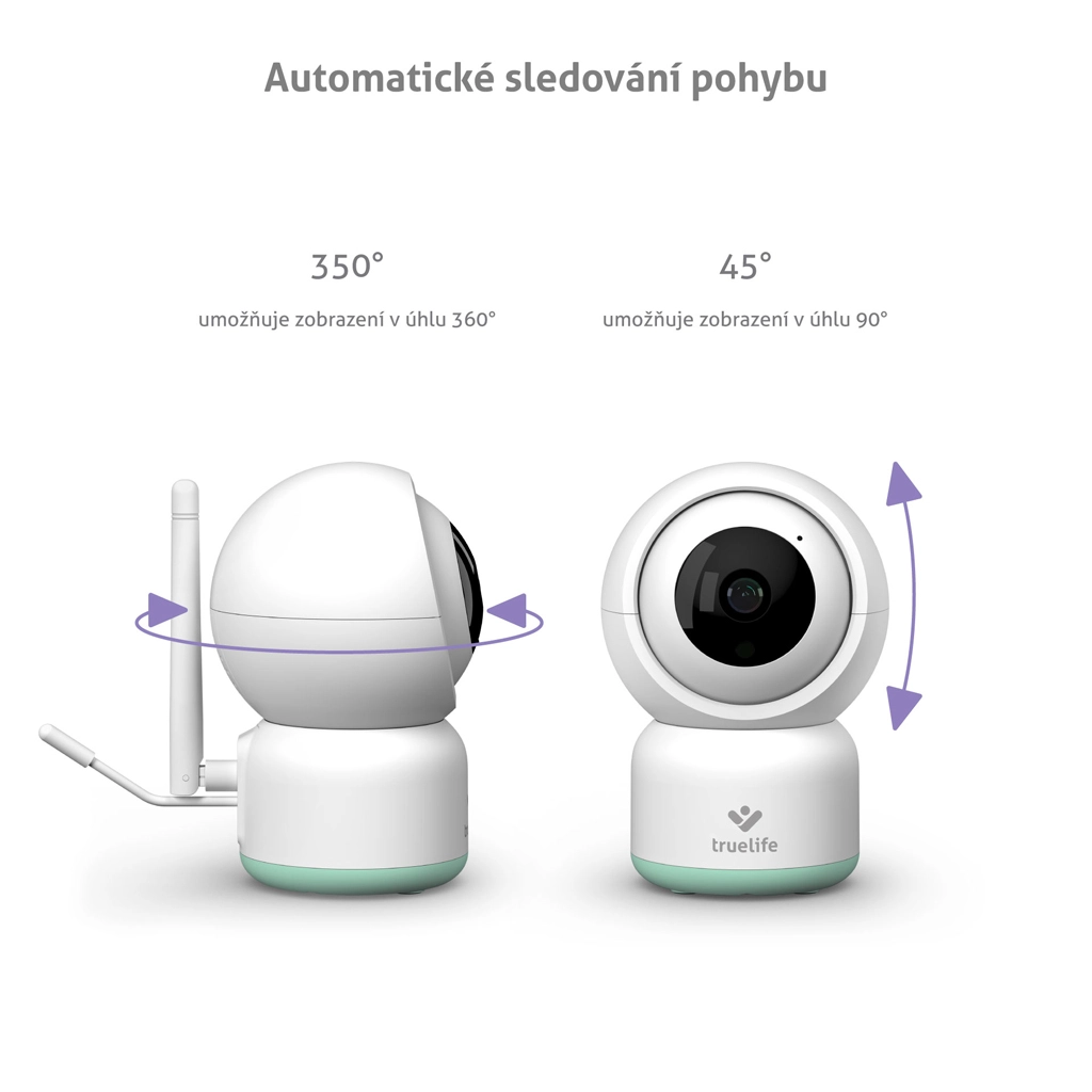 Le TrueLife NannyCam R3 Smart est un babyphone vidéo moderne pour le sommeil paisible de votre enfant et votre tranquillité d’esprit. La caméra motorisée avec un objectif grand angle de 100° et une résolution Full HD 1080p offre une image nette de jour comme de nuit grâce à la vision nocturne automatique. Via Internet, vous bénéficiez d’une portée illimitée et, dans l’application TrueLife Smart (entièrement en tchèque), vous voyez, entendez et réglez tout l’essentiel, y compris les alertes de mouvement, de son et de température.