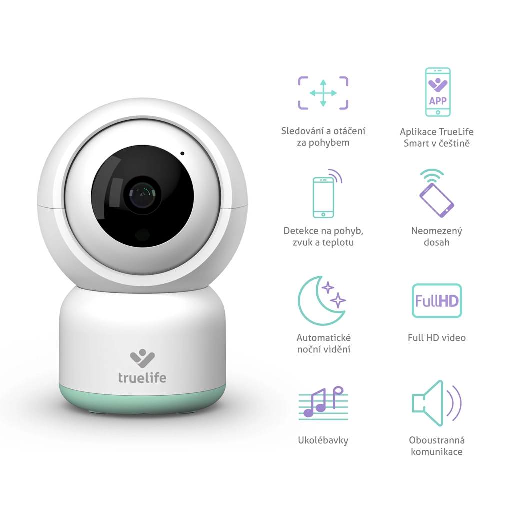 Gardez votre bébé à l’œil où que vous soyez grâce au babyphone TrueLife NannyCam R3 Smart avec image Full HD 1080p, portée illimitée via Internet et fonctions intelligentes. Il offre une caméra motorisée avec suivi des mouvements, une vision nocturne, la détection du son, des mouvements et de la température, une communication bidirectionnelle ainsi que des berceuses. Commande facile dans l’application TrueLife Smart en tchèque, chiffrement sécurisé et possibilité d’enregistrement 24/7 sur microSD.