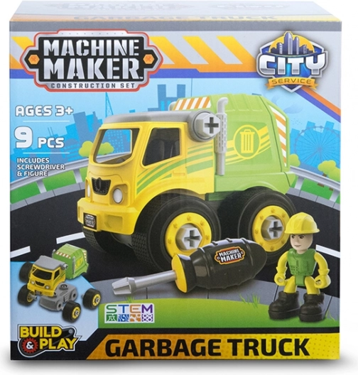 Découvrez le kit ludique CITY SERVICE de Machine Maker, qui permet aux enfants dès 3 ans de construire un camion de pompiers, une dépanneuse ou un camion-benne. Chaque véhicule inclut un tournevis, une figurine, des autocollants et un manuel, afin que les petits constructeurs développent leur motricité fine, leur raisonnement logique et leur créativité dans l’esprit de l’apprentissage STEM.