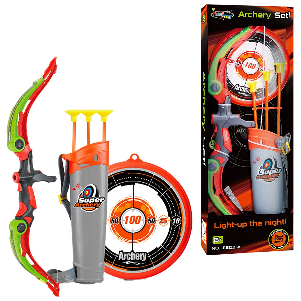 Le coffret comprend tout le nécessaire pour jouer immédiatement : un arc, plusieurs flèches lumineuses et une cible. Des matériaux résistants garantissent une longue durée de vie et la sécurité de jeu, tandis que les couleurs vives et le design attrayant séduiront tous les petits aventuriers.