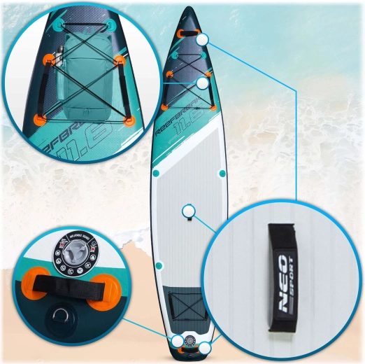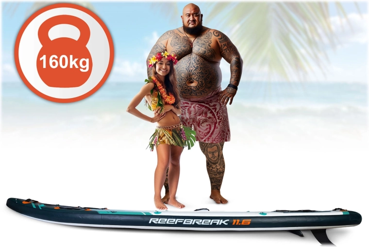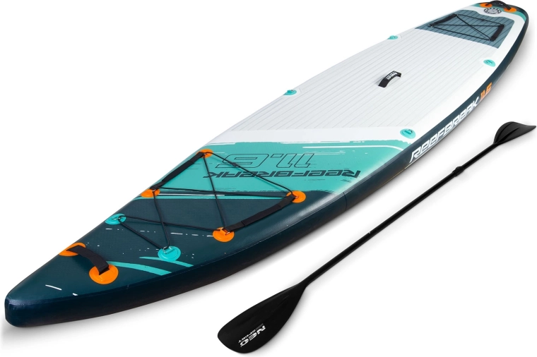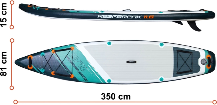 Le Reefbreak 350 × 81 × 15 cm est un SUP all‑round premium pour eau calme et petites vagues. Grâce à sa largeur de 81 cm, il offre une excellente stabilité pour les débutants, tandis que sa longueur de 350 cm améliore la glisse et la stabilité directionnelle sur les sorties plus longues. Charge maximale 160 kg et volume de 332 l permettant d’emporter aisément l’équipement ou un partenaire. Cinq poignées de transport pratiques facilitent la manipulation sur la berge comme depuis l’eau.