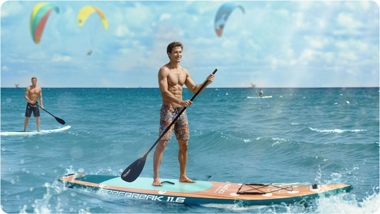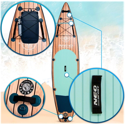 Découvrez le stand up paddle gonflable Reefbreak de Neo‑Sport, stable et résistant, aux dimensions 350 × 81 × 15 cm. Grâce à la technologie Drop Stitch Light et à la construction PVC triple couche, il offre une excellente rigidité, un faible poids et une capacité de charge jusqu’à 160 kg. Le pack comprend un ensemble d’accessoires complet – pagaie en aluminium réglable, pompe manuelle, siège avec dossier et pochette de rangement, leash de sécurité, dérive amovible, sac à dos et kit de réparation. Le revêtement EVA antidérapant, 5 poignées pratiques et le système élastique bungee à l’avant garantissent confort et sécurité sur eau calme comme sur petites vagues.