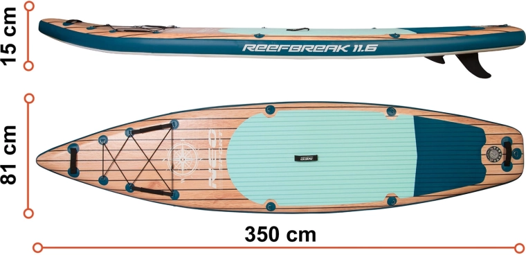 Le Reefbreak 350 est un SUP polyvalent pour la balade, la détente et l’entraînement sur l’eau. Le PVC triple couche avec tissu double Drop Stitch, les coutures renforcées et le renfort intégré type rail en carbone offrent une rigidité exceptionnelle sans poids superflu. Avec 81 cm de largeur, la planche reste stable pour débutants comme pour utilisateurs avancés, tout en conservant nervosité et bonne tenue de cap.