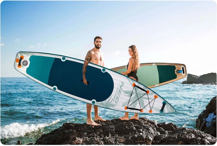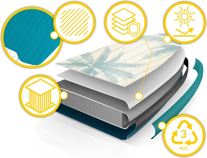 Le PVC multicouche avec noyau drop-stitch assure une grande rigidité, une excellente résistance et une longue durée de vie, tout en conservant un faible poids pour un transport facile.
