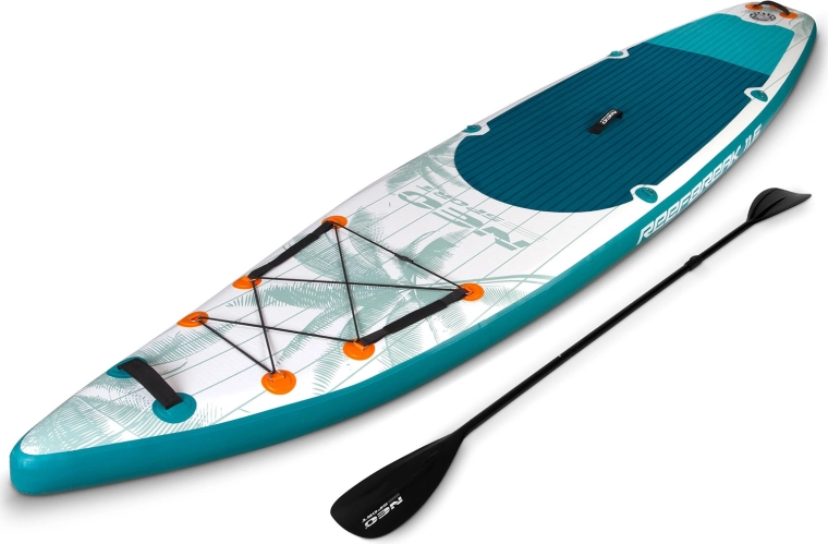 Le Neo-Sport Reefbreak est une planche SUP gonflable conçue pour la balade récréative, les sorties à la journée et les premières expériences sur l’eau. Grâce à ses dimensions de 350 × 81 × 15 cm, elle offre une stabilité et une assurance remarquables aux débutants, tout en procurant suffisamment de vitesse et de tenue de cap pour les utilisateurs plus avancés. Sa construction Drop Stitch Light, à la fois légère et rigide, garantit une haute résistance et une manipulation aisée lors du transport et du rangement.