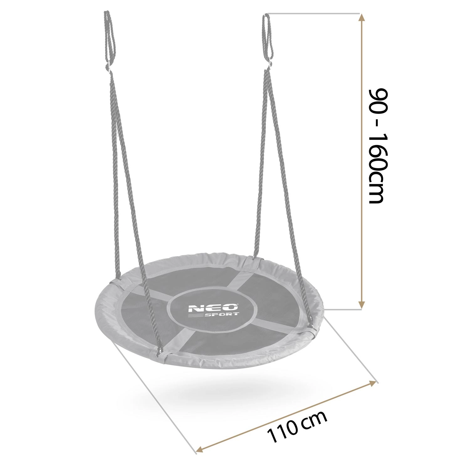 La balançoire-nid NEO-SPORT Swingo 110 cm est idéale pour le jardin comme pour la cour. Le siège large et confortable en tissu Oxford 600D imperméable et résistant se nettoie facilement et est agréable au toucher. La structure en acier entourée de mousse PE souple et les cordes tressées robustes offrent stabilité et sécurité pour les enfants comme pour les adultes.