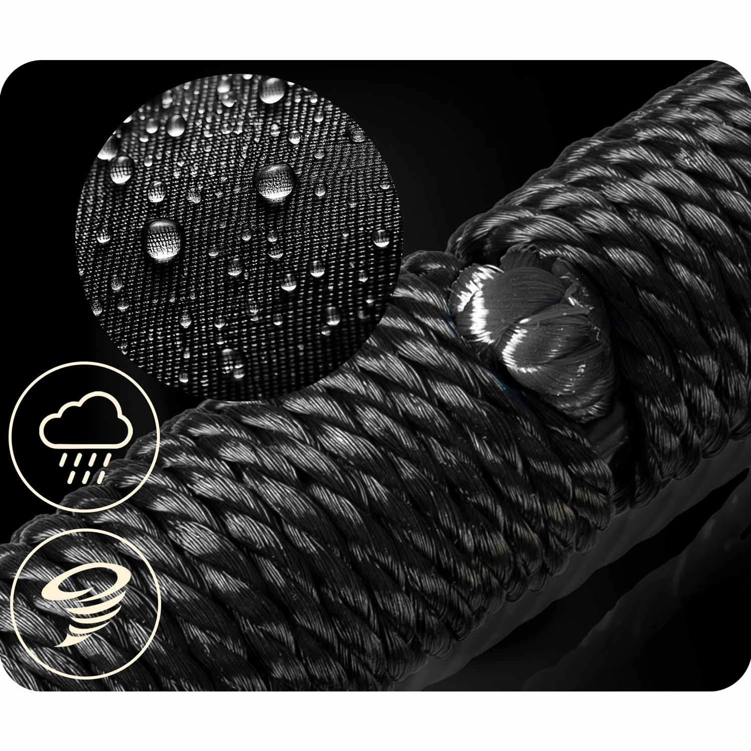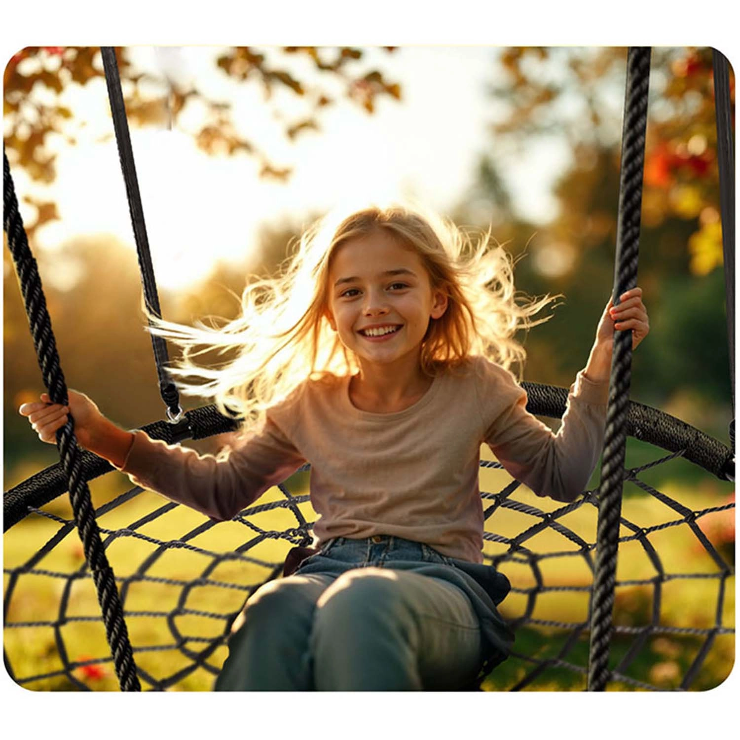 L’épaisseur et la qualité des cordes en PE assurent une résistance à l’abrasion, à l’humidité et au soleil. La balançoire se nettoie facilement et est prête pour un usage quotidien en extérieur.