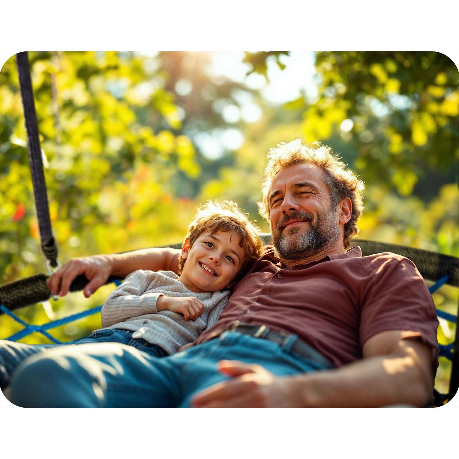 Les cordes de suspension à hauteur réglable (env. 90–160 cm) permettent d’adapter la balançoire à l’âge et à la taille de l’enfant, afin qu’elle l’accompagne dans le temps. L’entretien facile et la capacité de charge élevée jusqu’à 150 kg raviront toute la famille – enfants comme adultes peuvent en profiter.