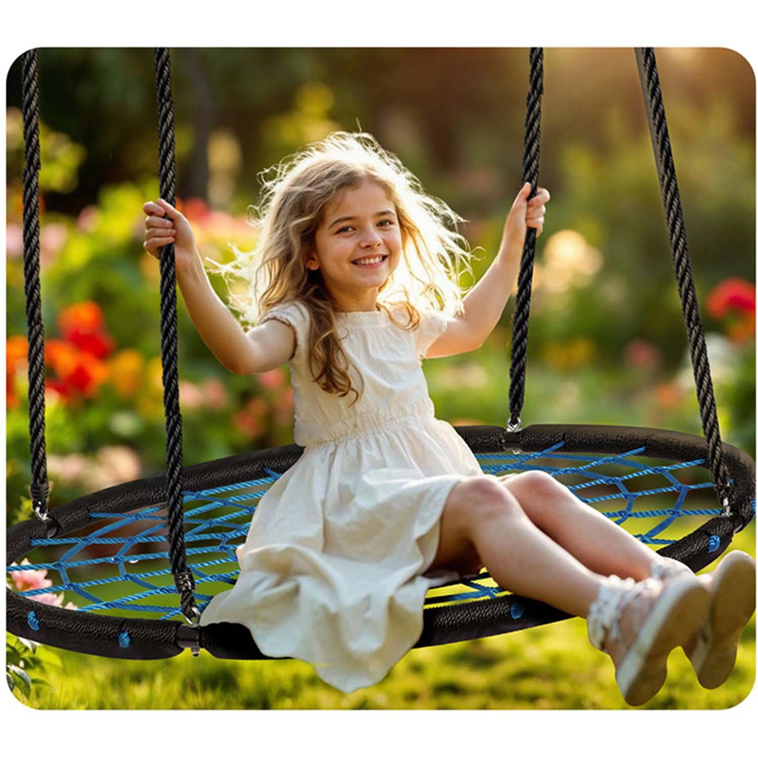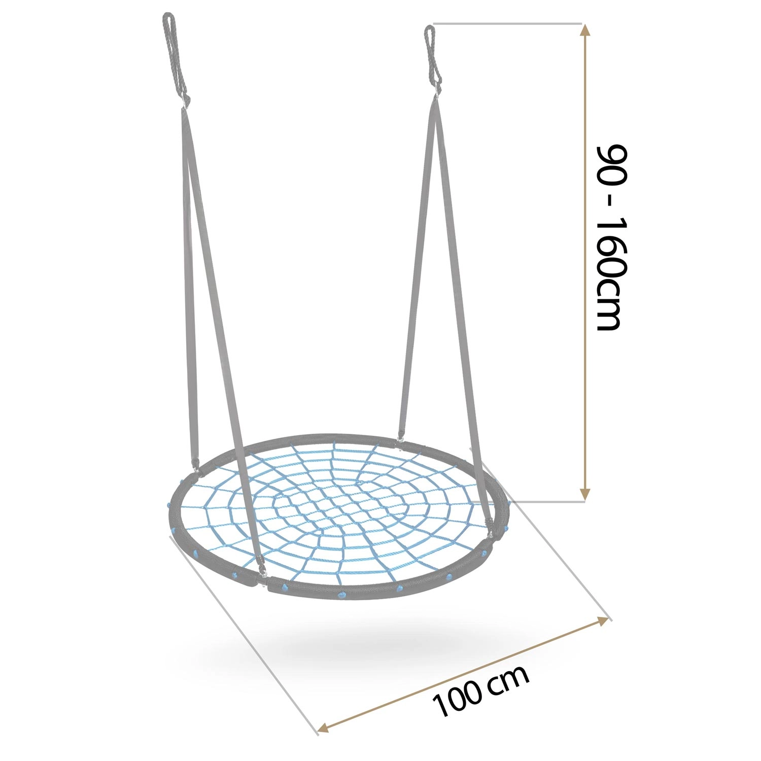 Profitez d’innombrables heures de jeu en plein air avec la balançoire nid ronde de 100 cm de diamètre signée NEO-SPORT. Elle offre une structure en acier robuste gainée de PE, des cordes durables stabilisées UV et un tressage facile à nettoyer de type « toile d’araignée ». Grâce à sa hauteur de suspension réglable et à sa capacité de charge jusqu’à 150 kg, elle est idéale pour les enfants comme pour les adultes.