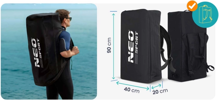 Tout est inclus : pagaie réglable, dérive amovible, leash, pompe double action avec manomètre, kit de réparation et sac à dos robuste. Il suffit de gonfler et de partir.