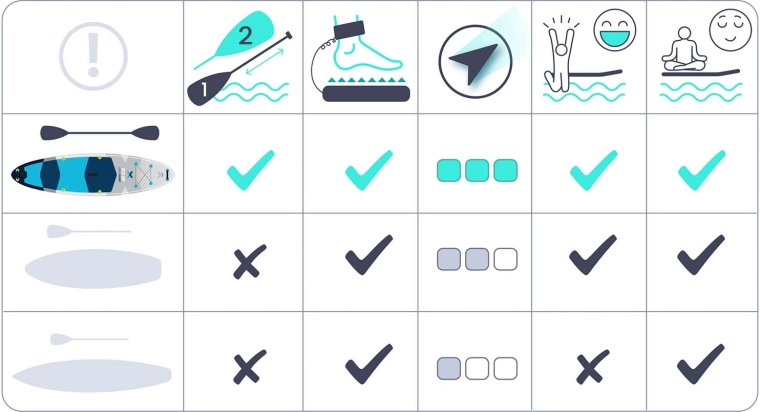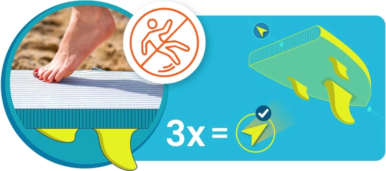 La mousse EVA texturée offre une excellente traction même avec les pieds mouillés – pour une posture sécurisée, une propulsion stable et des manœuvres confortables sur l’eau.