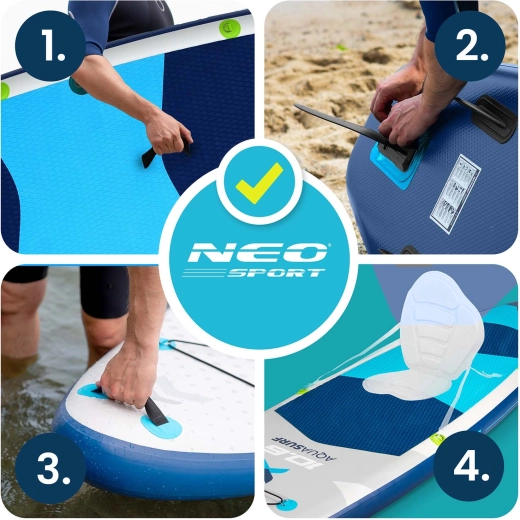 Profitez pleinement de l’été avec le paddleboard gonflable AQUASURF 10’6 – une planche stable, résistante et légère pour eaux calmes et petites vagues. Le set complet comprend tout pour partir immédiatement : pagaie en aluminium réglable, pompe double action avec manomètre, leash de sécurité, dérive amovible, kit de réparation et sac à dos de transport. Le revêtement EVA antidérapant, le système bungee avant pour l’équipement et la construction en PVC Drop Stitch Light triple couche assurent adhérence, maniabilité aisée et longue durée de vie.