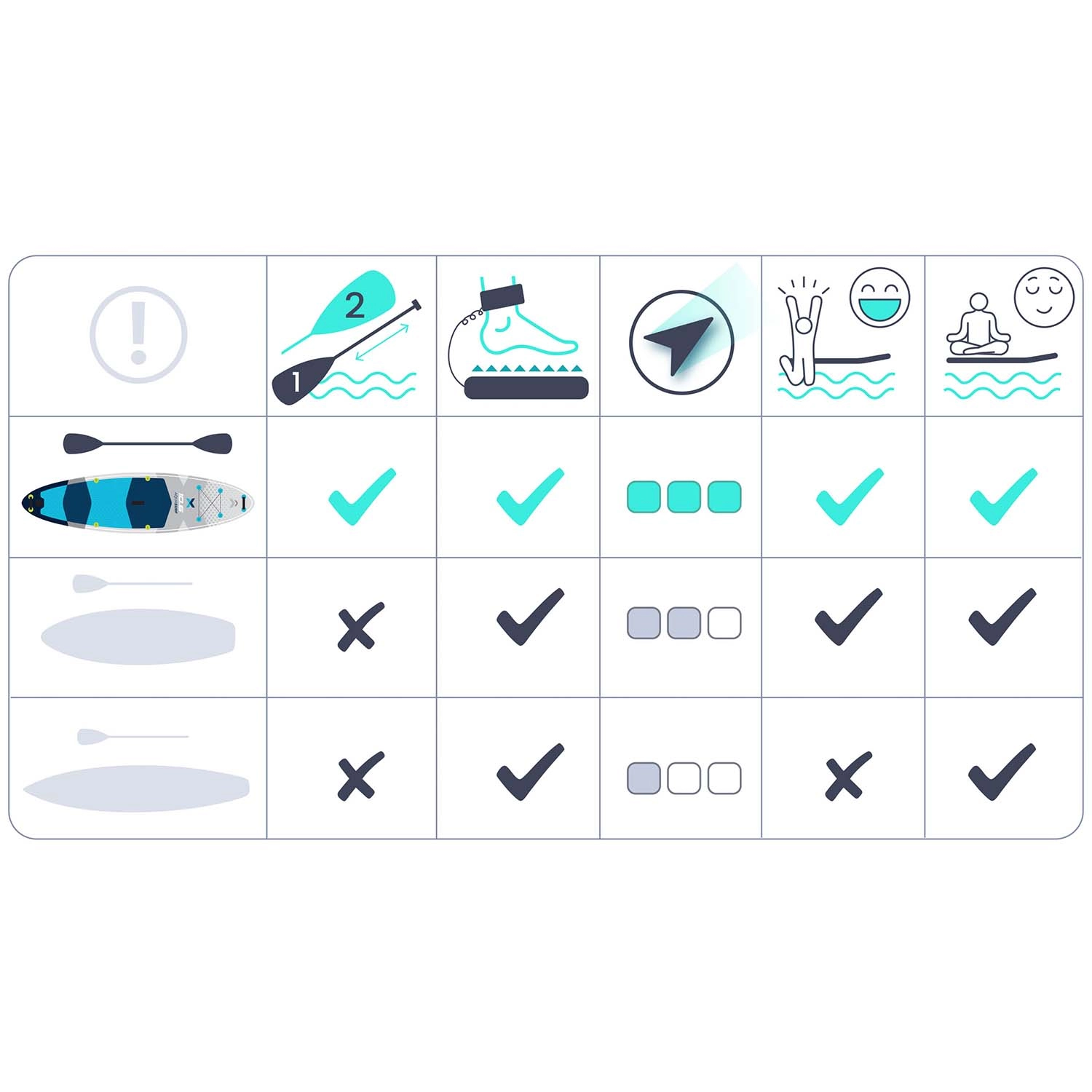 - Forme all‑round stable – rassurante pour l’apprentissage, les balades et les petites vagues.