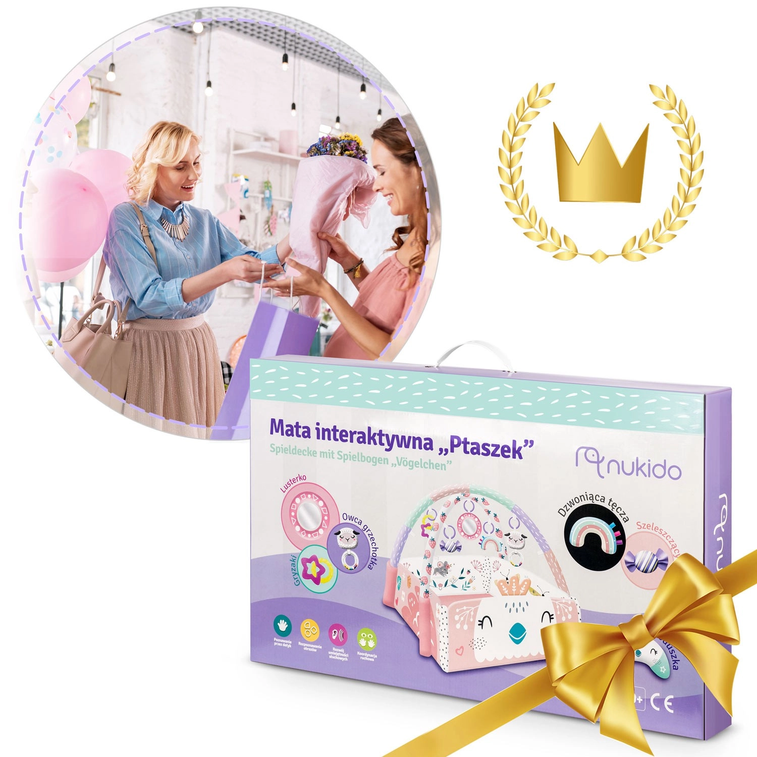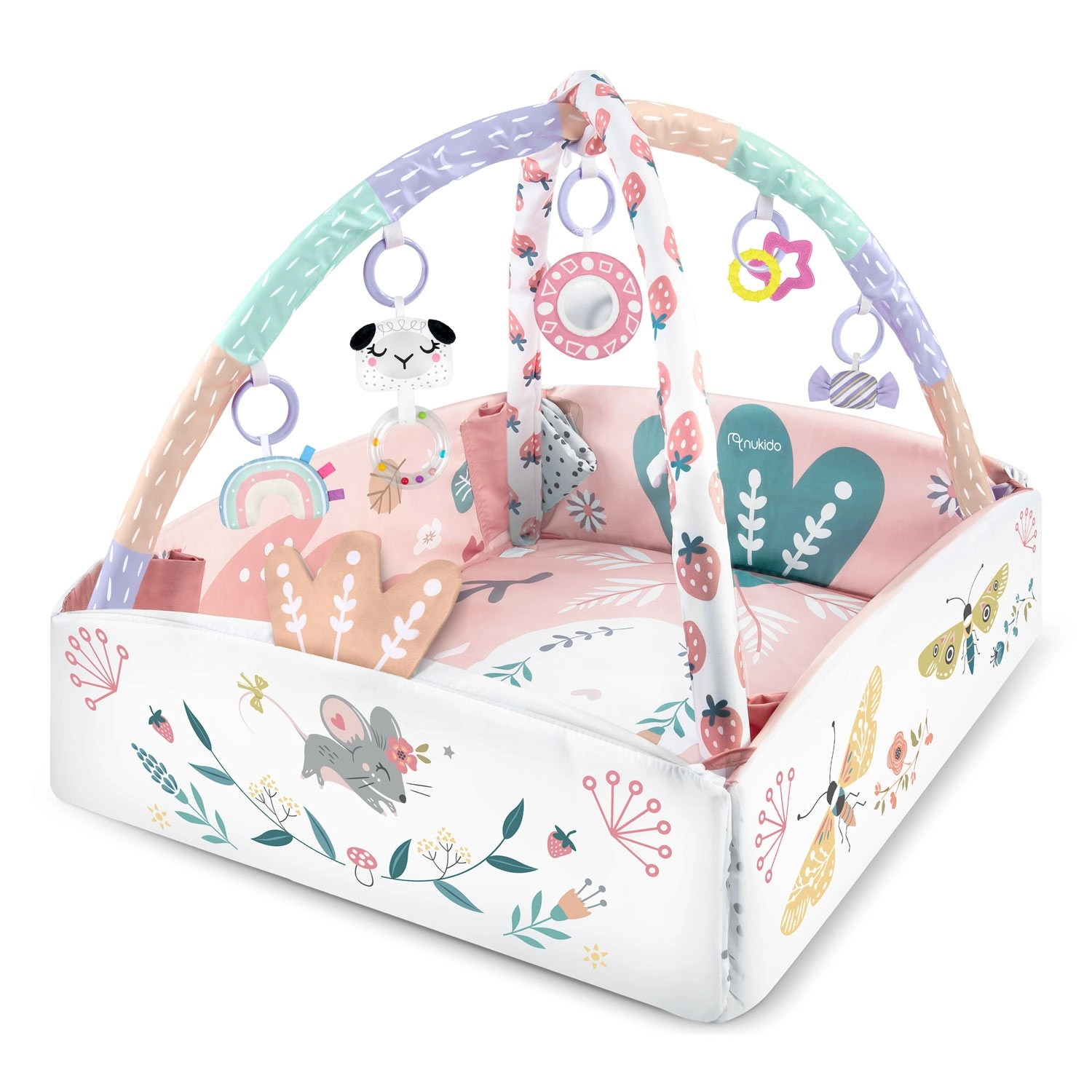 Découvrez le tapis d’éveil polyvalent NUKIDO qui évolue avec votre enfant. Il s’utilise en 3 configurations : en tapis ouvert, avec bords rabattables pour un coin de jeu plus sûr, ou en espace douillet pour les premières assises et activités. 7 jouets suspendus (miroir en matériau incassable, hochets, éléments bruissants et couinants, anneaux de dentition) stimulent la vue, l’ouïe et le toucher, et soutiennent la motricité fine.