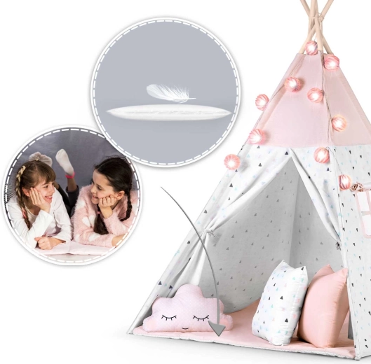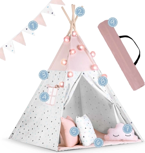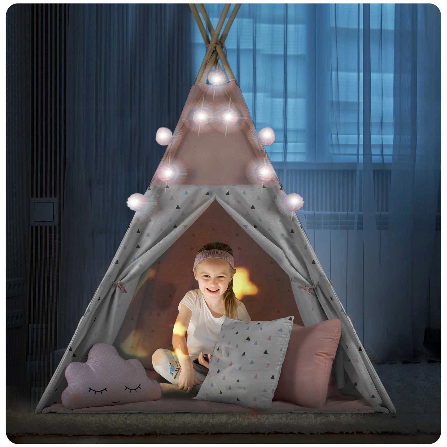 L’emballage comprend 3 coussins décoratifs, un tapis isolant doux et antidérapant, une guirlande, des petites lumières et un sac. Tout ce qu’il faut pour créer rapidement un coin féerique.