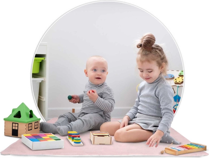 L’emballage comprend un tapis isolant avec picots antidérapants, qui protège du froid du sol et augmente le confort pour jouer et lire. Trois coussins moelleux et des petites lumières décoratives avec guirlande créent une atmosphère chaleureuse. La fenêtre ouvrante avec store et l’entrée relevable encouragent le jeu imaginatif et s’intègrent naturellement aux principes Montessori.