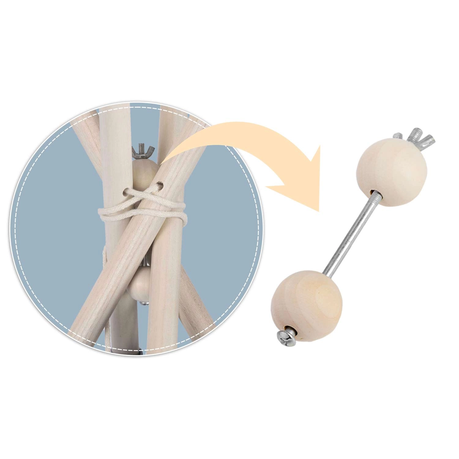 Quatre mâts en pin et le stabilisateur fourni maintiennent la forme du teepee, augmentent la sécurité et garantissent la solidité pendant le jeu.