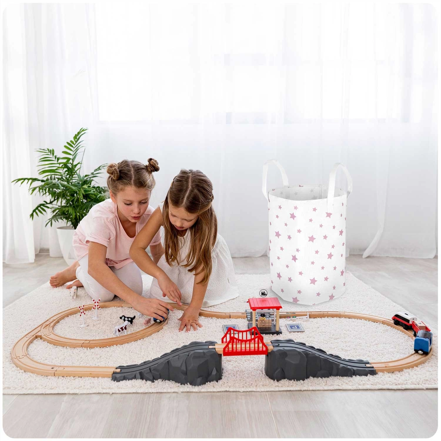 Le design blanc avec des petites étoiles roses réchauffe l’intérieur et encourage l’habitude de ranger en s’amusant.