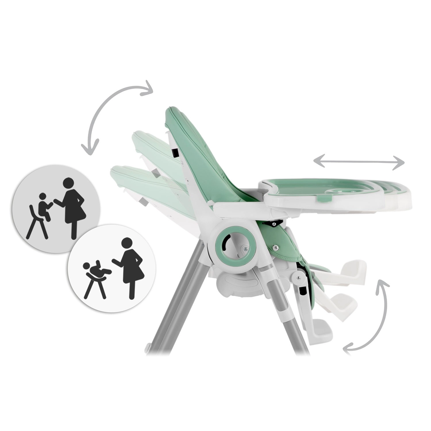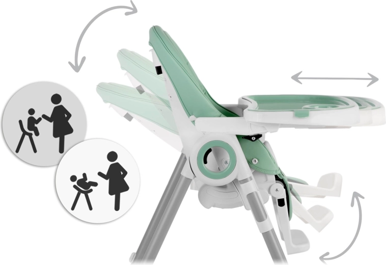 Réglage de la hauteur sur 8 niveaux, dossier inclinable et repose-pieds ajustable assurent la position idéale à table comme pour le repos.