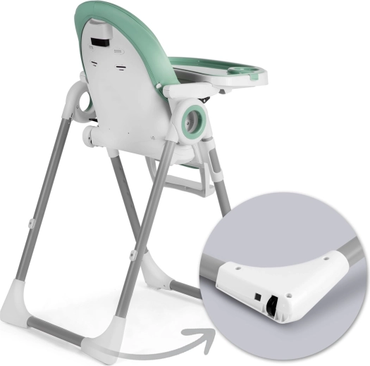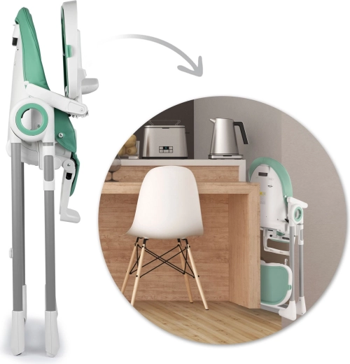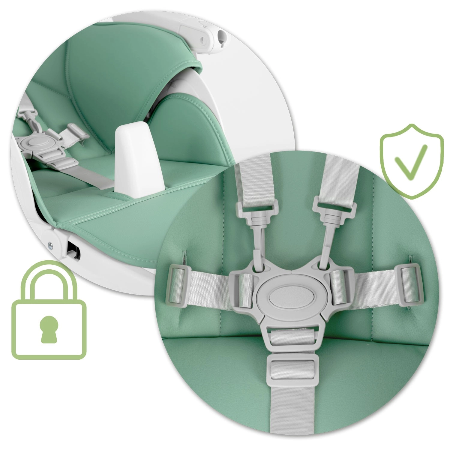 Un rembourrage doux, un dossier réglable et un harnais 5 points maintiennent bébé en sécurité et à l’aise pendant les repas comme pendant le repos.