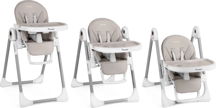Une fois pliée, la chaise occupe un minimum d’espace, ce qui la rend idéale même pour les petits appartements. La certification EN 14988 confirme le respect des strictes normes européennes. Nukido Belo est ainsi une solution pratique, des premières purées jusqu’aux repas autonomes.