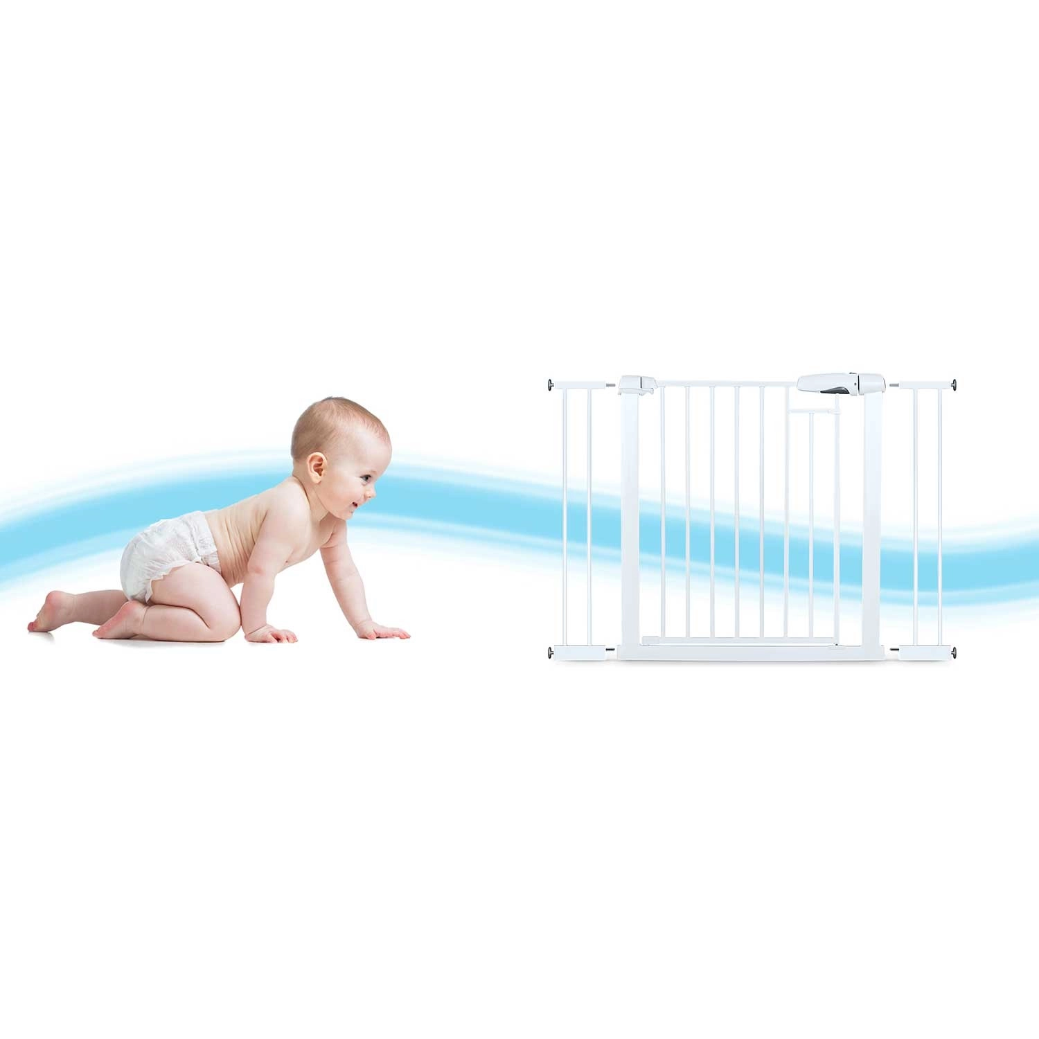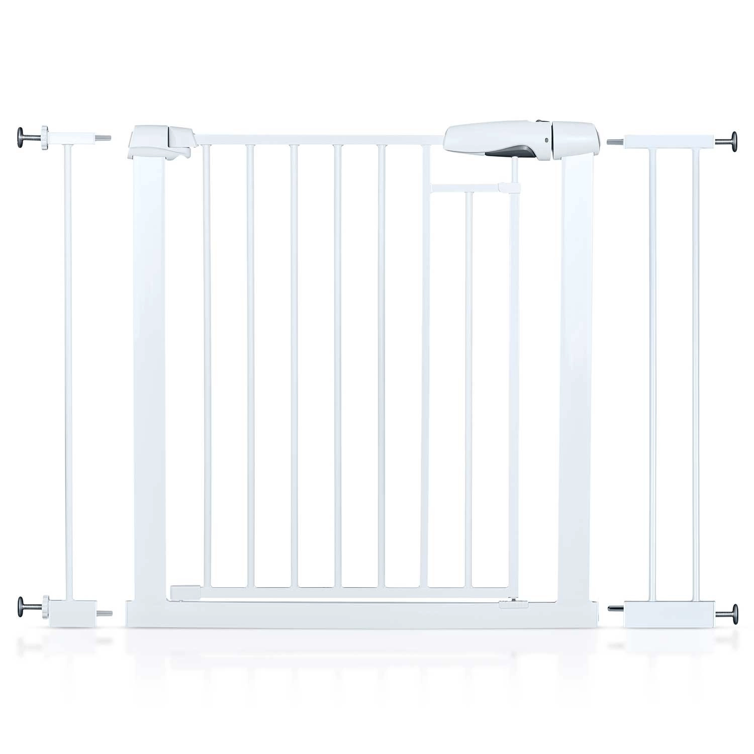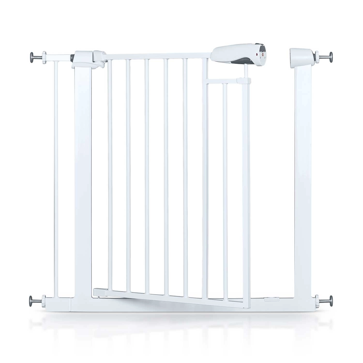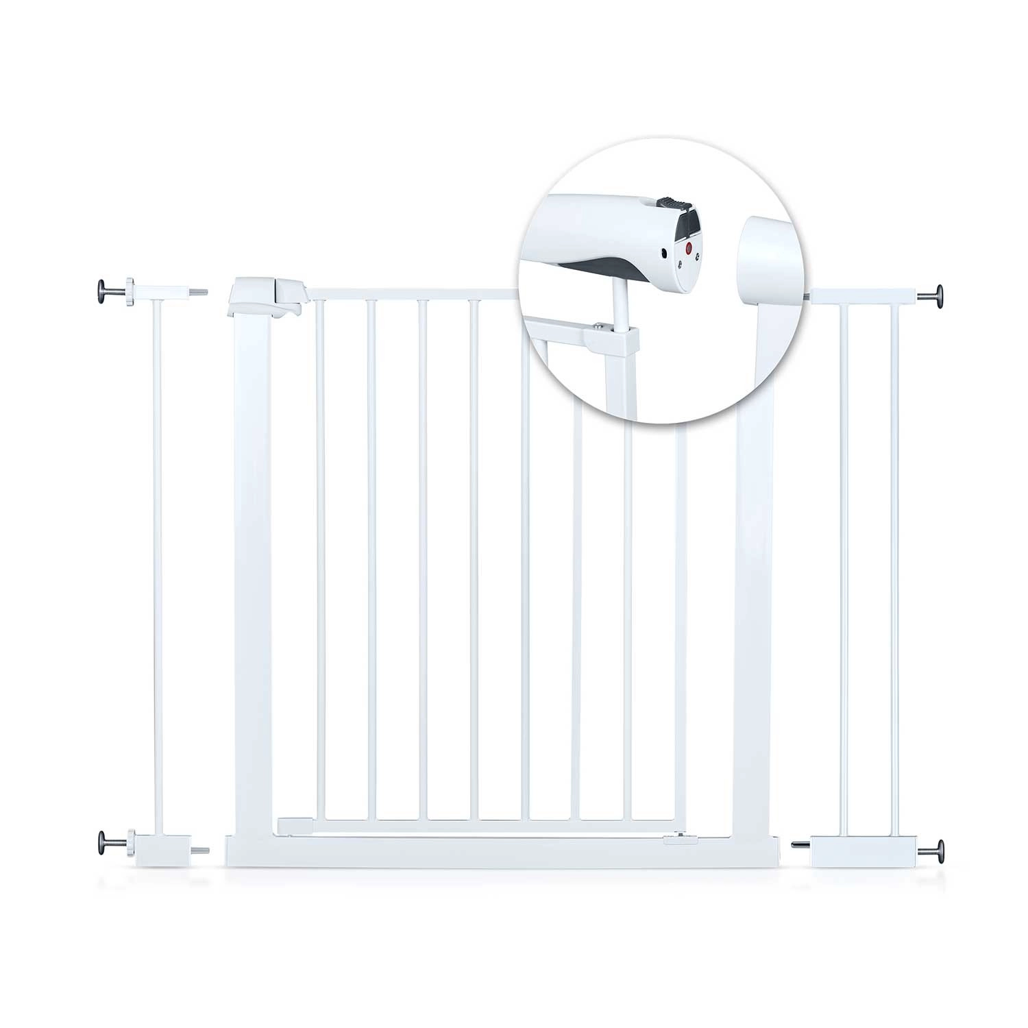 La barrière de sécurité NUKIDO protège les enfants et les animaux domestiques de l’accès aux escaliers ou aux zones dangereuses. Elle se monte sans perçage grâce à un système de pression, possède une structure métallique blanche et une fermeture magnétique avec ouverture à une main. Grâce à sa largeur réglable de 76 à 104 cm, elle s’adapte parfaitement aux portes et aux passages.