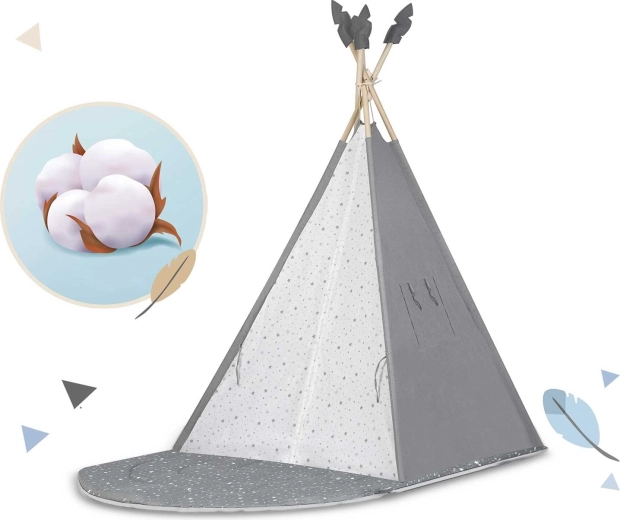 Le tipi NUKIDO est conçu en tenant compte des besoins des enfants – en mélange doux et résistant avec coton premium pour une excellente respirabilité et un grand confort. Le grammage supérieur de 175 g/m² assure douceur et durabilité, de sorte que la tente supporte sans problème les aventures quotidiennes. Les tons gris harmonieux au motif d’étoiles s’intègrent joliment à l’intérieur et favorisent le développement sensoriel de l’enfant.
