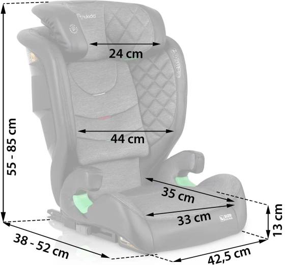 Le siège auto Nukido Louis est conçu pour les enfants d’environ 4 à 12 ans (100–150 cm) et allie haute sécurité, confort et praticité. L’installation rigide via ISOFIX maintient le siège stable, tandis que le système SIP – Side Impact Protection renforce la protection de la tête, du cou et de la colonne vertébrale en cas de choc latéral. La garniture premium avec matelassage souple et 2 positions d’inclinaison rend même les longs trajets plus agréables.