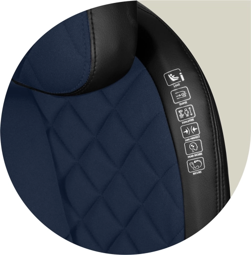 - Évolutif – 12 niveaux de hauteur d’appuie‑tête, 2 positions d’inclinaison.