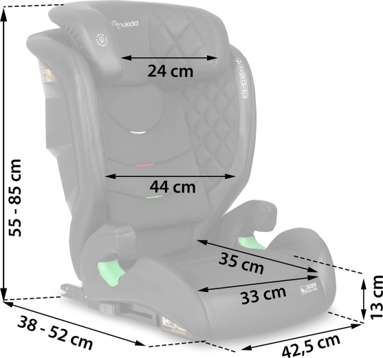 Le siège auto Nukido Louis est un choix sûr et confortable pour les enfants mesurant 100–150 cm (env. 4–12 ans). Il est conforme à la norme ECE R129 i-Size, propose ISOFIX pour une installation rapide et stable, 12 niveaux de réglage de l’appuie‑tête, une inclinaison à deux niveaux et une protection latérale SIP. L’entretien est facilité par une housse facilement amovible et lavable et un rembourrage premium pour un confort durable.